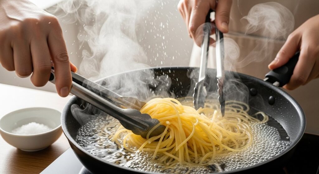 フライパンでパスタを茹でる際に必要な水の量や深さの見極め方を詳しく解説します。少ない水でも麺がくっつかず美味しく仕上げる手順や火加減のコツをまとめました。ワンパンパスタに最適な深型フライパンのおすすめも紹介します。 -