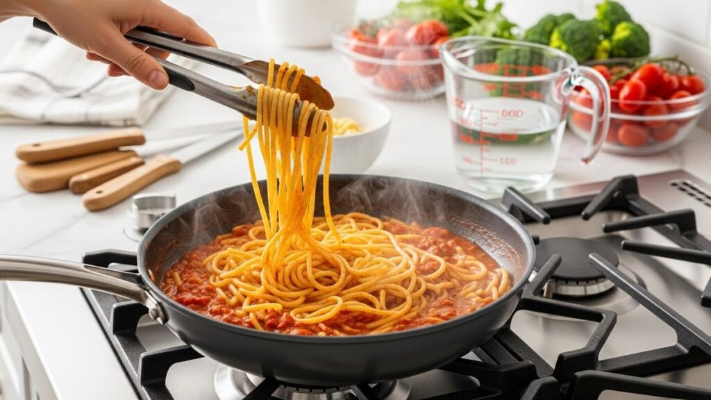 2人分のワンパンパスタを美味しく作るには、麺の量と蒸発量を踏まえた水の量選びが重要です。麺200gに対し水450〜650mlを目安に、ソースの種類に合わせて微調整するのがコツ。水が多い時の煮詰め方や足りない時の足し方など、大人数分でも失敗しないリカバリー術も紹介します。