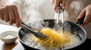 瓶から出したばかりのソースは、水分が少なく非常に濃厚です。そのままパスタに和えると、麺がソースを吸いすぎてしまい、ボソボソとした食感になったり、味が濃すぎたりすることがあります。ここで重要なのが、パスタの茹で汁を「つなぎ」として活用することです。