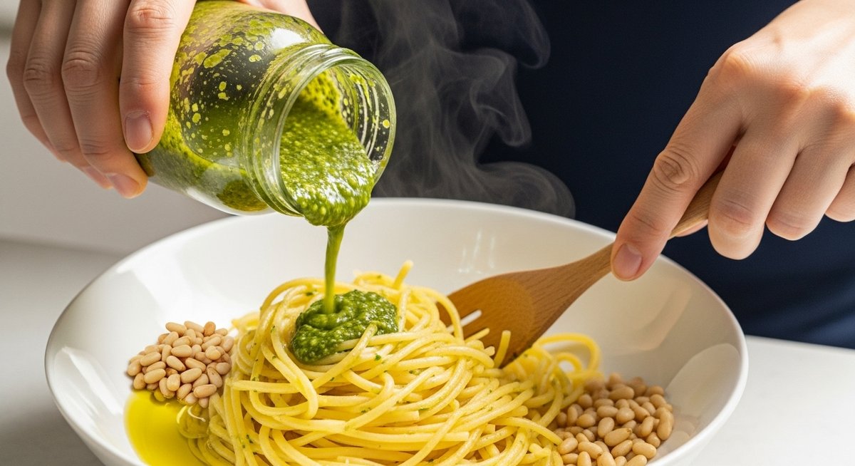 瓶入りのジェノベーゼソースをおいしく仕上げる鍵は、ソースの状態を整えることと、加熱しすぎないことです。バジルの繊細な風味を活かすための、ちょっとした工夫で仕上がりが劇的に変わります。