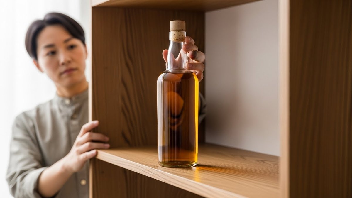 特に日光が当たる場所や、温度変化の激しいキッチンの近くなどに横置きしていると、この劣化スピードは数倍に跳ね上がります。ベタついた液漏れの跡を見つけた時には、すでに風味の多くが失われている可能性が高いです。横置きという不安定な状態は、ウイスキーにとって最もデリケートな「香り」を守る上で、非常に大きなリスクを孕んでいます。